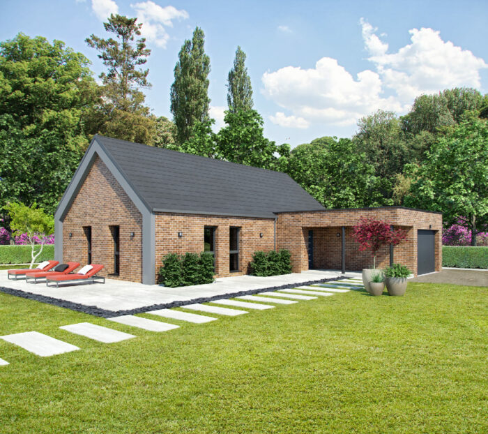 Découvrez la maison intelligente avec cette maison plain pied en briques rouge de 106m² au total. Un projet ? Faites appel à un conseiller Maisonneuve ! LES ESSENTIELS – Maison de 106m²– 3 chambres– 1 bureau– 1 salle de bains– connectée
