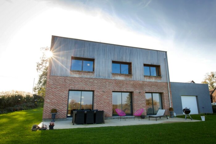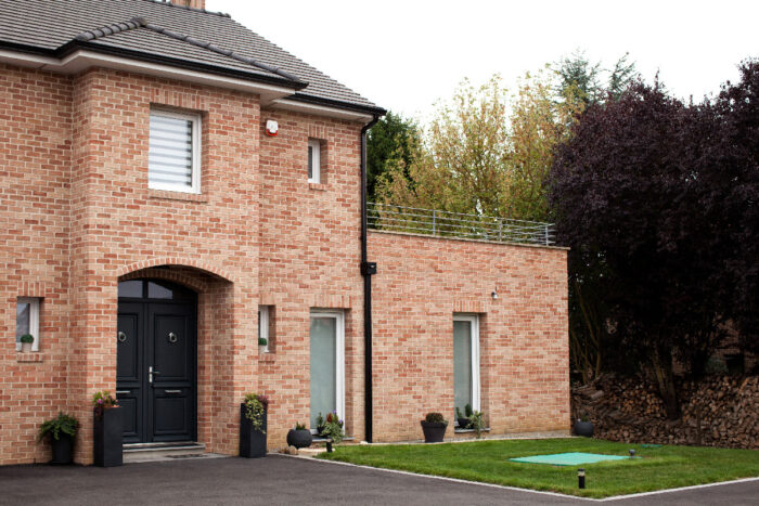 Maison traditionnelle connectée en briques rouge dessinée par Groupe Maisonneuve. Faites construire la maison de vos rêves en Nord-Pas de Calais ! LES ESSENTIELS – Maison de 255m²– 5 chambres dont 2 suites– 2 salle de bains– connectée